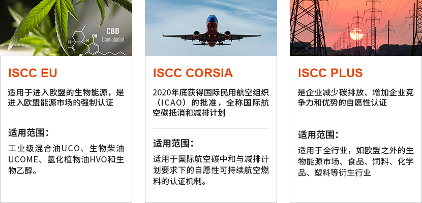 系)、ISCC-EU(欧盟委员会认可的生物质能可持续标准体系)、ISCC-DE(德国联邦食品、农业和消费者保护部认可